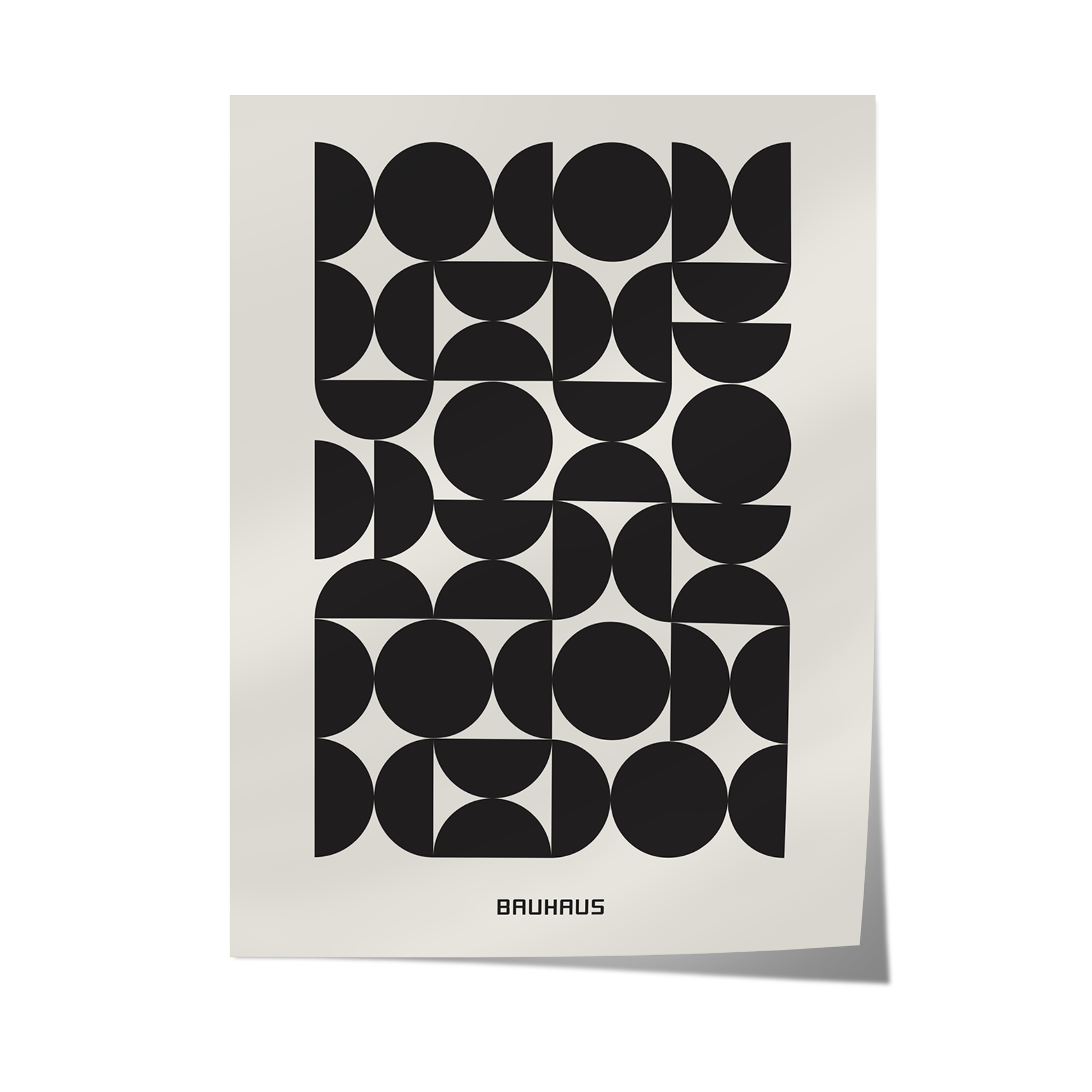Inspired by the iconic principles of Bauhaus design, this Bauhaus Geometry Poster showcases a striking arrangement of bold black shapes in perfect balance. Circles, curves, and structured forms come together in a minimalist composition that celebrates harmony, function, and modern aesthetics.